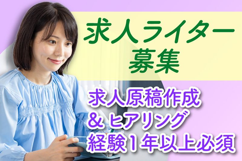 対象となる方 | 【応募資格】 【原稿を支えるのは、あなたのヒアリング】 質問力で、原稿の質は決まる。企業自身も気づいていない強みを、求職者を引き付ける魅力を、あなたの問いで掘り起こしてください。 ■必須条件 ・求人広告代理店の勤務経験 ・求人原稿作成およびヒアリング経験(1年以上) ※本ポジションでは、求人原稿の作成業務も並行して行うため、「採用担当者へのヒアリング経験」と「求人原稿の制作経験」のいずれも1年以上ある方のみを採用対象としております。 過去に少しだけ関わった方(例:自社採用で部分的に携わった程度)や、取材・インタビュー業務のみのご経験の方、原稿制作未経験の方は対象外となります。 ■優遇条件 ・求人広告の提案営業のご経験 ・給与や待遇など条件面の調整ができる方 ・正社員媒体の求人原稿制作経験 (リクナビNEXT マイナビ転職 エン転職など) 【メリット】 #経験者歓迎 #リモート面接OK #長期休暇あり #昇給あり #勤務開始時期調整 #平日のみOK #完全在宅 #PCスキル |