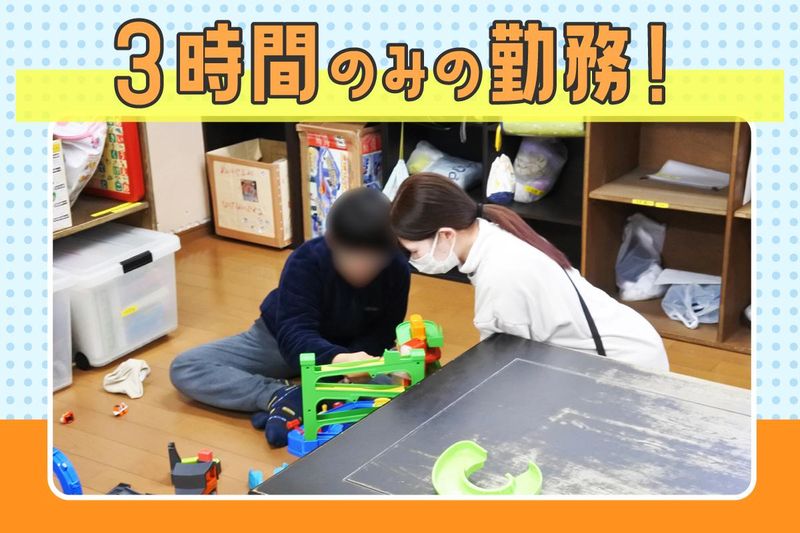 勤務時間 | シフト制 勤務時間詳細 14:00~17:00(残業なし) ★土曜・祝日も勤務OK ★1日3時間だけの短時間勤務 ―――― 【1日の流れ(例)】 ・送迎(学校やご家庭まで) ・おやつの時間 ・遊びや学習の見守り ※曜日や日によって多少変わります ―――― 【イベントについて】 季節ごとの行事や工作・音楽など、 子どもたちが楽しめるプログラムを実施。 スタッフも一緒に参加するので、 子どもたちと一緒に楽しい時間を過ごせます。 ―――― |