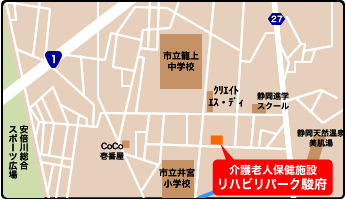 勤務地 | リハビリパーク駿府 420-0873静岡県静岡市葵区籠上静岡県静岡市葵区籠上8-6 勤務地 バス停籠上/しずてつジャストラインから徒歩5分 バス停平和二丁目/しずてつジャストラインから徒歩6分 |