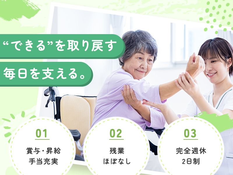 職種/仕事内容 | 仕事内容 〇‥‥‥‥‥‥‥‥‥‥‥‥‥‥‥‥‥ \書類選考なし×リモート面接OK/ 骨粗しょう症・リハビリに特化した 自然豊かな公園内のクリニック♪ ‥‥‥‥‥‥‥‥‥‥‥‥‥‥‥‥‥〇 ▽この求人のPOINT ☑2年目で年収500万が叶う! ☑賞与年2回(2~3ヶ月分)+昇給年1回 ☑基本残業なし&年間休日120日以上 ☑インセンティブ月最大4万円のチャンス ☑完全週休2.5日制でプライベート充実♪ <仕事内容> 整形外科クリニックにて、 理学療法士としての業務をお任せ! 具体的には… ・運動器リハビリテーション ・患者様への指導、サポート ・各種リハビリ機器の使用 ・リハビリにかかわる事務作業 ●1日の担当:10名ほど ※実務未経験OK! ※ブランクからの復帰も応援! メインは加齢による慢性疾患をお持ちの 高齢の患者様ですが、近隣にお住まいの 学生さんやお子様、会社員の方など 幅広い世代の方が来院されます。 治療スペースはカーテンで仕切られた オープンな空間!他のスタッフとも 連携しながらリハビリを進めます。 ━━ほかとは違う!ここもcheck━━━ ✅業界高水準の給与 +αでインセンティブ制度が充実! ✅患者様からの信頼の厚さが魅力 Googleクチコミ評価4.7! (2025年現在) ✅成長支援が豊富 提携会社による医療安全研修(自由参加) ━━━━━━━━━━━━━━━━━ \\教育体制バッチリ// 先輩スタッフがしっかりサポート! 実務未経験者や第二新卒の方も 安心してスタートできます〇 \\キャリアアップのチャンスも// 評価次第で主任などへの昇格も! インセンティブなどでしっかり還元します |