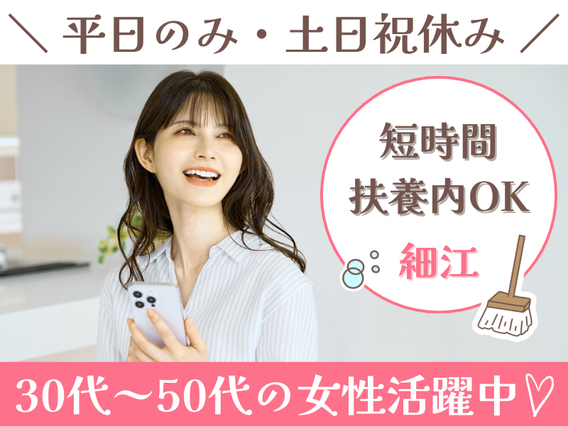 職種/仕事内容 | 仕事内容 家事や育児と両立しやすい環境♪ 30代~50代の主婦さんが楽しく活躍中✨ 時間帯は ①7:30~11:30(実働4時間) ②9:00~11:30(実働2.5時間) 残業はありません⭐ 平日のみ・短時間のシフトで安心◎ 「扶養内で働きたい」そんな希望も叶います ――――――――――――――――*。・++ <おしごと内容> 水回り(お手洗い)とお部屋の清掃、 床のモップ掛け、廊下等の掃きそうじを お願いします ヾ(o´▽`o) ○すぐ覚えられるシンプル作業 ○丁寧な研修があるので未経験でも安心♪ ――――――――――――――――*。・++ <働きやすさの理由は…> ●平日のみ・短時間ワーク 家事と両立しながら安定収入☺ 無理なく続けられるから長く働けます 土日祝はお休みだから 家族時間も大切にできます ●人と接することが少なく 落ち着いてコツコツ黙々と作業できます ――――――――――――――――*。・++ 家事や育児の合間に働きたい方、大歓迎♪ まずはお気軽にご応募ください! 電話番号 ▶ 054-272-6611(平日9~16時) WEB応募は24時間受付中! ――――――――――――――――*。・++ |