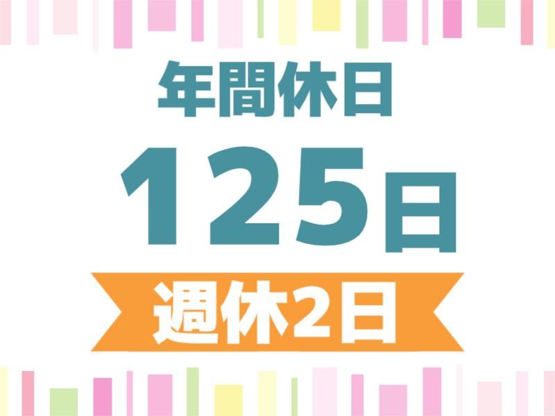 休日休暇 | 休日休暇 週休2日(日曜・祝日+他) ⇒土日休みの相談可能! *平日休みで土日出勤できる方、大歓迎! ★年間休日125日 |