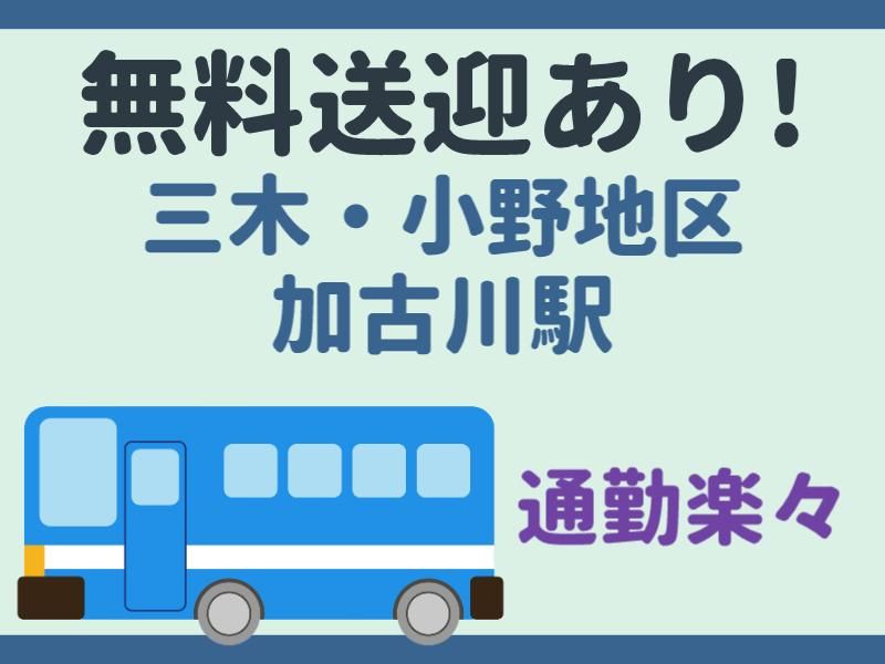 待遇・福利厚生 | 【保険制度】 雇用保険、労災保険、健康保険、厚生年金 【福利厚生】 待遇・福利厚生 【福利厚生】 ■社会保険完備 ■交通費規定支給 ■制服貸与 ■寮あり ■夏・冬手当(規定) ■正社員登用制度、 ■資格取得推進支援制度 ■無料駐車場完備(作業場まですぐそば) ■無料送迎バスあり(集合場所:三木・小野地区、加古川駅) ■カップラーメン・飲料・お菓子の自販機あり、売店あり ■入社祝金30万円規定支給(1月末までに入社の方限定) ■空調完備 ■個人ロッカー完備 ■更衣室あり ■食堂あり!1食300円~400円程度(定食や麺・丼ものなどあり) ※日勤帯のみ利用可能 |