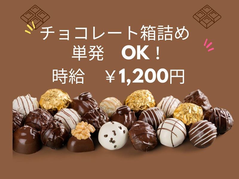 職種/仕事内容 | 仕事内容 バレンタイン用の有名チョコレートを化粧箱に詰めるお仕事です。 チョコレートや商品説明カードを箱に入れて、シールを貼るだけのシンプル作業♪ 難しい作業や重いものを運ぶ必要はなく、未経験の方でも安心してスタートできます! 注目ポイント: ・1日だけの単発勤務OK!好きな日を選んで働ける♪ ・30名の大募集!お友達同士の応募も歓迎 ・チョコの香りに包まれて楽しく働ける ・未経験歓迎◎シンプルで覚えやすい作業内容 ・リピーター多数の人気案件♪ #単発バイト #軽作業 #チョコレート工場 #週払いOK #未経験歓迎 |