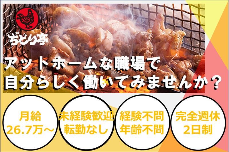 職種/仕事内容 | 仕事内容 ◆この求人のポイント ✅ 正社員募集!未経験・50代の方も積極採用中 ✅ 月給27万円以上+手当ありで安定収入 ✅ 完全週休2日制(日曜+平日1日)で私生活も大切に ✅ 2024年オープンの新店舗で清潔感◎ ✅ 東加古川駅から徒歩3分|車・バイク通勤OK ✅ 地域密着×転勤なし|家族との生活も守れる職場 ≪仕事内容≫ 焼き鳥居酒屋《ぢどり亭 東加古川店》にて、ホール・キッチン業務をお任せします。 「接客や調理は初めて」でもOK! 丁寧な研修とサポート体制で、無理なくスタートできます。 具体的な仕事内容 ・お客様のご案内やオーダー対応 ・ドリンク、料理の提供 ・鶏肉の仕込み、揚げ物などの調理補助 ・盛り付け、洗い場 ・店内の清掃や閉店作業 ・食材の在庫チェック、発注など ◎まずは簡単な業務から! 「皿洗い」「盛り付け」など、裏方業務からのスタートもOKです。 ◆1日の流れ(勤務例|15:00〜24:00) 15:00 出勤・開店準備・食材の仕込みなど 17:00 営業スタート(お客様対応) 19:00 忙しい時間帯をチームで乗り越えます 21:00 休憩(30〜60分・まかないあり) 22:00 片付け・店内清掃・在庫確認など 24:00 退勤(残業ほぼなし) ◆活躍中のスタッフ 現在、10代〜60代まで幅広い年齢層のスタッフが活躍中! 飲食業未経験で入社したスタッフも多数。 ・アルバイト(10代) 10名 ・社員スタッフ(40代) 1名 ・社員スタッフ(60台) 1名 「接客に不安がある方」でも、裏方業務から無理なくステップアップ可能です。 ◆採用担当からひと言 これまでの経験や年齢ではなく、 「これから地元で安定して働きたい」 そんなあなたを歓迎しています。 未経験で不安な方も、まずはお話しだけでもOK。 面接では、あなたのこれまでのこと、これからの想いをゆっくりお聞かせください。 一緒に働ける日を楽しみにしています。 |