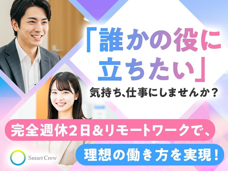 職種/仕事内容 | 仕事内容 未経験から「誰かの未来」を支える仕事へ 私たちの仕事は、お客様一人ひとりの状況に合わせた丁寧なサポートです。 専門的な知識は入社後の研修でしっかり学べるのでご安心ください。 「誰かの役に立ちたい」というあなたの気持ちを、 当社で活かしてみませんか? 私たちと一緒に、社会に貢献するやりがいを感じながら、 自分らしい働き方を実現しましょう。 ◤ ̄ ̄ ̄ ̄ ̄ ̄◥ 仕事内容について ◣______◢ 転職をするのにもお金が必要だったり、 何をすれば良いか分からない、など… 退職前の不安、退職後の手続きに関する疑問やお悩みに寄り添い、 安心して新しい一歩を踏み出せるようサポートするオフィスワークです。 未経験から安心して始められるサポート業務です! 専門知識は入社後にしっかり学べるので、ご安心ください。 ★基本的にリモートワークです! ★営業活動は一切ありません! >>具体的には ✅ 退職や転職に関する必要書類のご案内・確認 ✅ メールやチャットでの問い合わせ対応 ✅ お客様の状況に応じたスケジュール管理やデータ入力 * * * ◤ ̄ ̄ ̄ ̄ ̄ ̄ ̄ ̄◥ 働き方と待遇について ◣________◢ 株式会社スマートクルーは、働きやすさも大切にしています。 ✨ 月給27.5万円~(昇給あり) ✨ 完全週休2日制の土日祝休み ✨ リモートワークOK(月2日程度出社あり) あなたの“誰かを支えたい”気持ちを、 当社で活かしませんか? * * * ◤ ̄ ̄ ̄ ̄ ̄ ̄ ̄ ̄◥ 研修について(出社) ◣________◢ 入社後は本社にて2ヶ月間の研修を実施します。 経験がない方でも安心して取り組めるよう、 マニュアルやツール、充実した研修をご用意しています。 専門的な知識や仕事の流れを丁寧に学べるため、未経験の方もご安心ください。 本社:東京都新宿区西新宿2-6-1新宿住友ビル32階 >>アクセス ★都営大江戸線 「都庁前駅」A6出口直結 ★丸ノ内線 「西新宿駅」2番出口から徒歩4分 * * * ◤ ̄ ̄ ̄ ̄◥ 当社について ◣____◢ 株式会社スマートクルーは、 未来を切り開くためのソリューションを 提供する企業です。 Webマーケティング、人材支援、コスト削減 など幅広い分野で、単なるサービス提供に留 まらず「信頼」をテーマに活動しています。 情報があふれる時代だからこそ、 各分野の専門家がチームとなり、 AIでは代替できない価値ある情報とサービス をお届けしています。 * * * ―――やりがいも働きやすさも、 どちらも譲れないあなたへ。 私たちと一緒に、誰かの未来をサポートするやりがいを感じてみませんか。 |