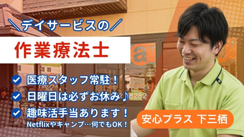 職種/仕事内容 | 仕事内容 \ 「できた!」の喜びに、一番近くで / ⭐ 病院のその先へ。生活の場でのリハビリ ⭐ 日曜定休+GW・お盆・年末年始連休! ⭐ 有給消化率71.2%で実質年休123日も! ※年間休日114日+平均有給取得日数 ●=======●〇●=======● 「着替えが自分でできた」 「料理がまた作れた」 日常の何気ない「できた!」を支える。 それが、安心プラスの作業療法士の仕事です。 病院でのリハビリとの違いは、利用者様の 暮らしそのものに寄り添い、長期的な関係を 築きながら変化を見届けられること。 「その人らしい生活」を再建するプロとして、 あなたの専門性をここで活かしませんか? ●=======●〇●=======● ✅具体的なお仕事内容  ̄ ̄ ̄ ̄ ̄ ̄ ̄ ̄ ̄ ̄ ̄ ̄ ̄ ̄ ̄ ̄ ̄ ̄ ̄ ̄ デイサービス「安心プラス」にて、 心身機能の維持・向上のための訓練を担当します。 ▼ 日常生活動作(ADL)の訓練 着替え、食事、トイレ動作など、 生活に 直結する動作の練習や指導を行います。 ▼ 作業活動・レクリエーション 手工芸、園芸、ゲーム等を通じて、 楽しみながら 心身機能の維持を図るプログラムを運営します。 ▼ 認知機能訓練・環境調整 脳トレなどの支援や、ご家族・スタッフへ 「暮らしやすい環境づくり」の助言を行います。 ※タブレット完備で、記録待ちナシ! |