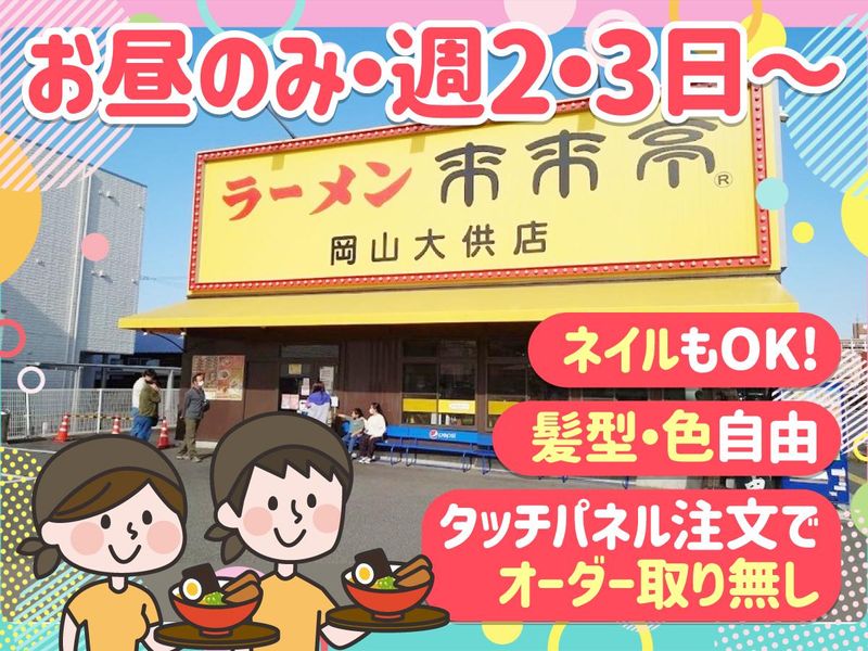 職種/仕事内容 | 仕事内容 \扶養内・副業・短時間も大歓迎!/ 注文取りナシ&柔軟シフトで家庭や学業と両立◎ 【来来亭 岡山大供店】でランチタイム限定スタッフを大募集! ■お仕事内容■ (とってもシンプル!) タッチパネル注文だから、オーダー取りは一切ナシ♪ 未経験の方や久しぶりのお仕事復帰でも始めやすい内容です。 ・お客様のご案内 ・出来上がった料理の配膳 ・テーブルの片付け ・簡単な調理補助や店内清掃 など ▶先輩が丁寧にフォローしますので、安心してスタートできます! ■こんな方にピッタリ!■ ・家事の合間に働きたい主婦(夫)さん ・土日祝メインで働きたい学生さん ・副業・Wワークでお探しの方 ・久しぶりのお仕事復帰を考えているミドル世代の方 ■シフト例■ 【平日だけ】10:00~14:00など 【土日祝だけ】10:00~15:00など ▶週2・3日〜/1日3h〜OK シフトはお気軽にご相談ください! *週3~・週4~などご希望の働き方でOK / うれしいポイント \ ✅ 注文取りなしで未経験でも安心 ✅ 扶養内・Wワーク・短時間勤務OK ✅ 学校行事・急なお休みも柔軟対応 ✅ 主婦・シニア・学生活躍中! ✅ スタッフ割引あり(全メニュー70%OFF) ー 日本語能力試験N1以上をお持ちの方 以下の3つの在留資格をお持ちの方は、 日本語能力試験(JLPT)N1相当の日本語力が必要です: ●特定技能 ●技能実習生 ●留学生 Individuals holding any of the following visa types are required to have Japanese language proficiency equivalent to JLPT N1: ●Specified Skilled Worker ●Technical Intern Trainee ●Student (International Student) ー ☎まずはお気軽にお問い合わせください! 「ちょっと気になるな…」という方も大歓迎です♪ お電話でのご応募もOK◎ ▶【086-224-6661】担当:店長まで (15時以降が繋がりやすいです!) |