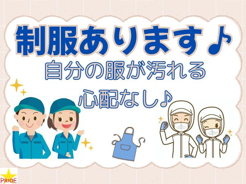 待遇・福利厚生 | 【保険制度】 雇用保険、労災保険、健康保険、厚生年金 【福利厚生】 待遇・福利厚生 【福利厚生】 ★週払いOK(規定有) ★社会保険完備(法定) ★交通費規定支給 ★バイク・自転車通勤OK ★有給自由 ★長期休暇あり ★時間固定シフト制 ★制服上下、帽子、安全靴、軍手貸与 ★日替わりランチ購入可(1食420円) ★食堂・休憩室あり ★ロッカーあり ★作業場にスポットクーラー・扇風機完備 |