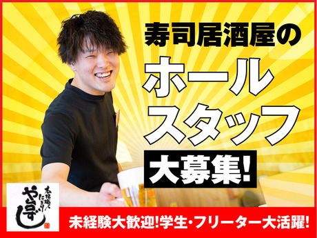 職種/仕事内容 | 仕事内容 飲食業未経験もOK!初バイトでも安心の職場環境♪土日祝手当や正月手当など、手当も充実◎ ☆∴..∴「いらっしゃいませ!」の元気な声が響く、活気あふれるや台ずし∴..∴☆ ここでは、美味しいお寿司と一緒に、最高の仲間と出会えるんです! ★未経験OK! 先輩が丁寧に教えるから安心スタート! ★まかない最高!店長の創作料理が食べられる! ★友達もできる! バイト仲間とワイワイ盛り上がろう! ★髪色・髪型自由で働ける!清潔感があれば派手髪・ネイル・ピアスもOK!(規定あり) ★動画マニュアル完備 ★録画面接も対応!24時間好きなタイミングで面接OK! 学校帰りや遊びのついでに、サクッと稼いで、美味しいものもゲットしちゃおう! 「ちょっと気になるかも…」って思ったら、気軽に応募ボタンをクリック! キミの笑顔と元気が、や台ずしをさらに盛り上げる!一緒に「旨い!」と「楽しい!」を作りましょう♪ 【シゴト】 寿司居酒屋「や台ずし」のホールのお仕事! …お客様のご案内や料理の配膳、レジなど 。・゜☆・゜・ 。・゜☆・゜・ 。・゜☆・゜・ 。・゜☆・゜・ 。・゜☆。・゜ |