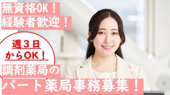 職種/仕事内容 | 【仕事内容】 薬局事務のパートスタッフを募集しています! 【働きやすいポイント】 ・週3日〜OK! ・1日4時間〜勤務可能! ・ブランクがある方や経験者も大歓迎! ■主な仕事内容 薬局内で、処方せんの入力・電話・FAX対応、薬のお届けなど行って頂きます。 ・電話対応 ・備品、消耗品の発注 ・処方せんの入力業務 ・レセプト(保険請求) ・お名前シールの作成、ホチキス止め ・調剤補助(薬のピッキングなど機械の操作に従う単純作業です!) など まずは問い合わせだけでも大歓迎! 「話だけ聞いてみたい」という段階の方も、ぜひお気軽にご連絡ください。 ご応募・お電話を心よりお待ちしております。 |