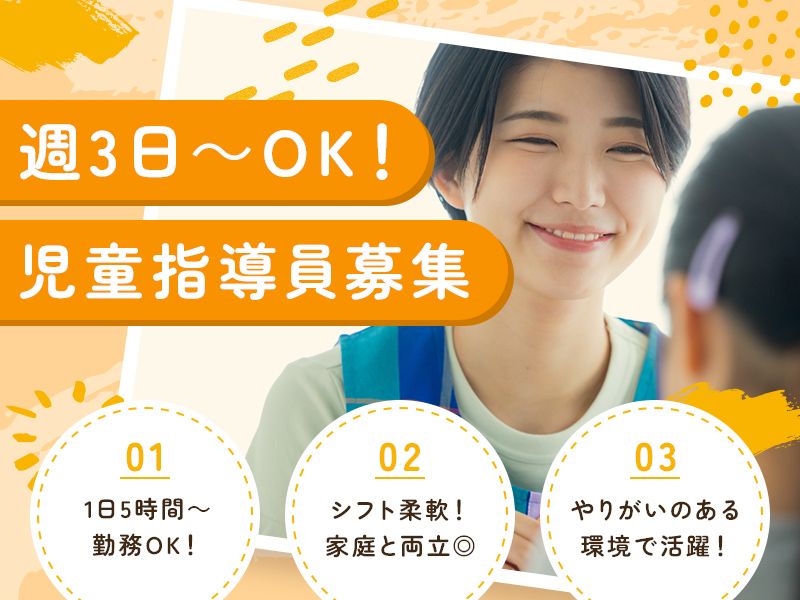 職種/仕事内容 | 仕事内容 ⋈・。・。⋈・。・。⋈・。・。⋈ 未来を育む、笑顔あふれる毎日を。 放課後等デイサービスの 「児童指導員」募集中! ⋈・。・。⋈・。・。⋈・。・。⋈ …求人のPOINT…………………………… ✨1日5時間~OK・週3日~OK ✨実務未経験でも安心のサポートあり ✨子育て中の方も活躍中!ブランクOK ✨20代、30代活躍中!40代以上も歓迎! ✨子ども好きが活かせる ……………………………………………… 【仕事内容】 児童指導員業務をお任せします。 小学校・中学校に通う児童・生徒を対象に、 放課後等デイサービスで支援を提供します。 ●児童への指導 ・レクリエーション ・室内遊びや運動支援 ・学習支援(宿題サポートなど) ●管理業務 ・児童の送迎 ・事務作業 など / 実務の経験がなくても安心のワケは… 先輩がイチから丁寧に指導! 安心して飛び込んできてください! \ イベント 月1回第4土曜日にお出かけ。(滋賀県の信楽市に陶器の色付けに行ったり伊丹市の大きい公園に遊びに行った実績あり) 児童の特徴 近隣の小学生の児童が7割程度で軽度の方が多め、身体介助はほぼなし |
