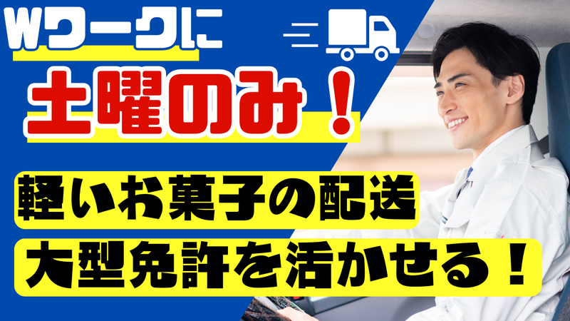 職種/仕事内容 | 仕事内容 お菓子の配送ドライバー募集! 土曜日だけの勤務なので ダブルワークの方もOK! 大型車で朝5時から積込開始 2~3件の卸し作業です。 手積み・手降ろしですが、 お菓子なので重たい荷物はなし! 身体への負担少なめなので安心◎ |