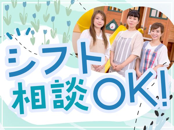 勤務時間 | シフト制 勤務時間 シフト制 8:00~18:00(シフト制) 週3日~OK、1日7h~OK! 平日のみ/土日祝休みもOK! 【シフト例】 8:00~14:00、9:00~18:00など 【お休みも取りやすい!フォロー体制抜群】 専任の営業担当が保育園・幼稚園と相談し、 お休みが取りやすいフォローを行っています◎ |