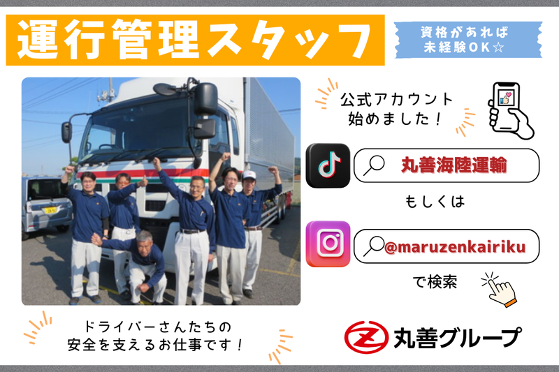 職種/仕事内容 | ■仕事内容 ✨【運行管理・サポートスタッフ募集】✨ ★社員インタビューあり★ ◎業界大手の丸善グループだから安定&安心!全国に拠点があり、長期的に働けます! ◎働き方改革を推進中!労働環境を整え、無理なく続けられる職場づくりに注力! ◎頑張りがしっかり評価される!細かい給与計算で、努力がしっかり給与に反映! =======✨SNS始めました✨======= ⏰Instagram/⏰TikTok▶︎『@maruzenkairiku』 職場の雰囲気などチェックしてみてください♪ ============================== ✅仕事内容 物流のスムーズな運営を支える、運転手管理・配車業務のサポートをお任せします! ◆運転手の管理・点呼 ◆配送ルートの調整・指示 ◆日報や運行指示書の作成 ◆安全会議の資料作成・安全指導のサポート ◆健康診断の受診促進 など 運送業界の経験がなくても、研修やOJTでしっかりサポートするのでご安心ください! 20代~50代と幅広い年齢層の方が活躍中です✨ ✅社員インタビュー ≪入社4年目/30代/Tさん≫ Q:入社の決め手は何ですか? A:もともと父が運送業に携わっていたこともあり、小さい頃からトラックは身近な存在でした。 学生時代に手伝いをする機会もあり、自然と「自分もいつかは運送業に」と思っていましたが、まずは他の世界も経験してみたいという思いもあって、飲食や接客業に進みました。 接客の仕事は自分に合っていたようで、ホテルや旅館では支配人まで経験しました。 ただ、経験を積んでいく中で、人やモノが動く物流の仕事がずっと頭の片隅にあり、転職を決意しました! Q:実際にお仕事を始めてみて、いかがでしたか? A:正直、想像していた以上に大変でした(笑) 運行管理の資格を持っていなかったので、仕事をしながらの勉強。 土地勘もなく、時間帯による渋滞や荷物ごとの扱い方も現場で一つずつ覚えていきました。最初は効率よく動けず、ドライバーに迷惑をかけてしまうことも…。 冷凍車は壁が厚くて、通常のトラックより積載量が少し減るんです。空間のムダをなくす積み方にもコツが必要で、時間がかかりました。 ドライバーに直接「どう積めば一番効率が良いか?」と相談しながら、少しずつ自分なりのやり方を見つけていきました。 Q:一日の流れを教えてください! 8:30 出勤・朝礼 8:40 配車の変更対応・整理、翌日の配車準備 (グループ会社やお客様に連絡し、空きがないか調整) 12:00 昼休憩 13:00 配車業務 (ドライバーに荷物を割り当てたり、新たな荷物を探したりなど) 16:00 運行指示 (翌日のドライバーの動きを伝える) 17:00 配車内容の最終整理・お客様と連携 19:00 退勤 Q:働いていて「ここが好きだな」と思うところはどんなところですか? A:「これはもう無理かも…」という状況でも、頭をひねって組み合わせがピタッとハマったときの達成感たまらないです! 脳汁出るっていうか、「やったー!!」って声が出ますね! Q:仕事でやりがいを感じる瞬間は? A:ドライバーから「助かったよ」「ありがとう」と言われたときが一番嬉しいです。 例えば、腰を悪くしたドライバーがいて、できるだけ軽い荷物を割り振るように調整したことがあります。 そうした気遣いに感謝されたとき、「この仕事やっててよかった」と心から思いました。 自分、負けず嫌いなんですよ。「無理でしょ?」って言われたら、「やれるし!」って燃えるタイプです(笑) Q:逆に、大変だなと感じることは? A:車両の故障や事故は本当に予測できません。いつ何が起こるかわからないし、お客様に迷惑をかけるわけにはいかない。 そういう時こそチームの力が試される場面ですね。何とかして荷物を届ける、それが使命だと思っています! Q:今の職場の雰囲気はいかがですか? A:とにかく明るくて、チームワークが良いです! ドライバーとも距離が近く、雑談も多いし、年に何回かみんなでBBQもします!めっちゃ楽しいですよ♪ 仕事で大変なことがあっても、チームの雰囲気が和やかなので頑張ろう!と前向きに続けられる環境です! ■仕事の特徴 車通勤OK バイク通勤OK |