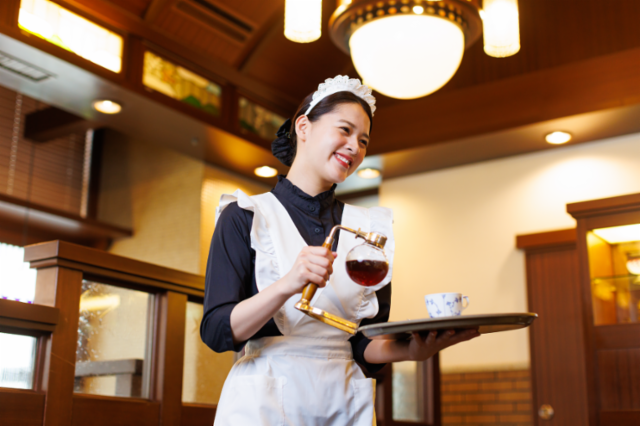 職種/仕事内容 | 仕事情報 ● 仕事内容 ご来店いただいたお客さまをお席までご案内し、オー ダーを受けて商品をお席まで運びます。大正ロマン漂 うオシャレな店内とかわいい制服に合わせて、落ち着 いた丁寧な接客で美味しい珈琲を楽しんでいただきま しょう♪ 未経験でも大丈夫 コーヒーの知識や接客スキルは不要! ほとんどのスタッフが 未経験からのスタートなので 安心してご応募ください! 「かわいい制服が着たい」 「おしゃれなカフェで働きたい」など、 志望動機は様々。 老舗喫茶店のマナーが学べるので、 就活にも役立ちますよ。 週3日〜、1日3時間〜OK 柔軟なシフトでライフスタイルに合わせて時間を有効 活用できます。また、グループ店で使える割引チケッ トや、まかない、従業員割など特典も盛りだくさん! 昇給のチャンスやお給料前払い制度もあり、がっつり 稼ぎたい方も大歓迎です♪ 歓迎条件 アルバイトが初めての大学生の方はもちろん、フリー ターや第二新卒のがっつり働きたい方も活躍中!飲食 店未経験でも大歓迎ですが、ホールスタッフや調理ス タッフなど、飲食経験者も多く活躍しています♪3ヶ月 の短期から1年以上の長期まで幅広く募集中です。 東和フードサービス概要 椿屋珈琲、ダッキーダック、イタリアンダイニング DoNa、ぱすたかん、こてがえしなど、幅広い業態 を運営。社員215名、キャスト1,981名在籍(2022 年4月末日現在)。スタンダード(東京証券取引 所)上場。 |