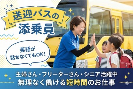 職種/仕事内容 | 仕事内容 子どもたちの笑顔が癒しの瞬間! Kids Duoの送迎バスの添乗員として 子どもたちの乗り降りのサポートや シートベルトの確認等をお任せ。 ・車種:ワンボックスカー ・乗車人数:1回で最大7名 ・エリア:近くの小学校/スクール/自宅付近 「ハロー!」と元気に挨拶してくれる 子どもたちの笑顔に癒されながら働けます♪ 子供に関わる仕事がしたい方歓迎! 週2日~短時間勤務でシフトの融通可能! お仕事は平日の午後だけ! 土日祝はお休みなのでメリハリばっちり。 シフトも柔軟に対応します! <こんな働き方が叶います> ・子どもの突然の発熱にも対応◎ お休みも気軽にご相談ください! ・短時間勤務だから日中は別の仕事、 夕方から「KidsDuo」で! ・定年後のお小遣い稼ぎとして 週2日のみでマイペースに。 異職種・異業種経験者も活躍中! 飲食店、カフェ、アパレル、スーパーなどの 接客・販売・サービス業や 事務、清掃など異業種の経験をしていた方も多数活躍中! 経験は一切不問です◎ 未経験、ブランクのある方のチャレンジも大歓迎! イチから丁寧に教えるので安心くださいね! |