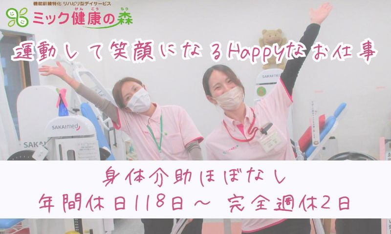 職種/仕事内容 | 仕事内容 【アピールポイント】 ✅身体、食事介助ほとんどなし! ✅10:00~14:00シフトの募集。週2日〜OK! ✅車通勤OK!交通費から駐車場代補助まで有! ✅子育てママさん、シニアの方でも働きやすい♪ ✅経験不問!人柄重視の採用です 未経験の方大歓迎 きつい仕事、難しい仕事はありません! 「いつもありがとう」 感謝の言葉がたくさんもらえて、 笑顔溢れるHappyなお仕事です♪ 病院やクリニックを退職された60歳以上の方も、 現役で活躍されています♪ まだまだ働きたい!という方、是非ご応募ください! 「笑顔溢れる空間が好き」 「優しいって言われる」 「思いやり溢れる職場が好き」 そんな方にはとてもおすすめな環境です! 気になった方はまずは お気軽にお問い合わせくださいね♪ <仕事内容詳細> ■マシントレーニング補助・設定 →研修でマシンの使用方法をレクチャーします。 ■午前の片付け・午後の準備・お留守番 ■各種集団体操 →各種体操のマニュアルがありますのでご安心ください。 ■その他介護業務全般(看護経験を活かして) →必要に応じてバイタルチェックや ご利用者様とのコミュニケーションや移動の補助等 <mik japanってこんな会社> 【 社内アンケート結果 】 ##当社で働いていて良いなと思うものランキング## 1, 休日・休暇 2, 職場の雰囲気 3, 労働時間 4, 仕事内容 5, 業務量 / 会社のビジョン・理念・社風 <実際に働いてる方の声> 20代 Aさん 職場の雰囲気が良い、スタッフ同士のコミュニケーションがよく取れています! 30代 Bさん 育児世代には働きやすい環境です。 急な休みも小さい子供がいるスタッフも多く快く対応していただける為助かります 40代以上 Cさん 個人の体調・メンタル面でもチームで補い協力して頂けます。 苦手な業務でも嫌な顔せず何度も教えて頂き、上長に対しての信頼感が増しました。 利用者様からはミックに来たら笑顔になって元気で帰れると言われる事が嬉しいです! |