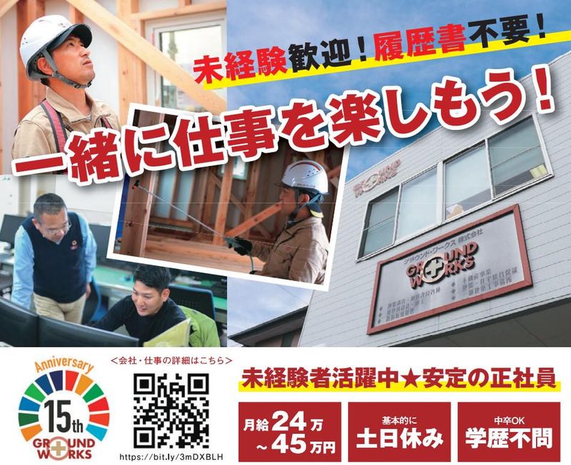 職種/仕事内容 | 仕事内容 「正社員、やってみたい。でも自信がない…」 そんなあなたの“はじめの一歩”を、 私たちは全力で応援します! ✅未経験でも安心の研修制度あり ✅職場見学OK・履歴書なしでOK! ✅転勤なし!地元密着で働ける ✅資格取得は会社全額サポート 地元で長く働きたい、 安定した仕事を探している―― そんな方にぴったりのお仕事です。 ================= ⭐電話応募も大歓迎! 「ちょっと話だけ聞いてみたい…」 そんな方も、 まずはお気軽にお電話ください! ▶【TEL】0538-45-3313 ================= 家づくりの最初の工程 「地盤調査」を行う仕事です。 専用の機械を使い、 建設予定地の地面の強さや構造を調べます。 最初は先輩と現場に同行し、 機械の操作や記録の仕方を ひとつずつ覚えていけるので、 未経験の方も安心してスタートできます。 ▼<具体的には…> ・建築予定地での地盤調査 ・測定データの入力・記録作成 ・先輩社員との同行・2名1組作業 ・片付け・日報記入 <⭐未経験からのチャレンジ歓迎> 「地盤調査って何?」そんな方でも大丈夫。 入社後は道具の使い方から地盤の見方、 記録のつけ方まで丁寧に教えていきます。 現場では必ず先輩と一緒なので、 一人で判断に困ることはありません。 <⭐地元で長く働ける安心感> 勤務地は静岡県袋井市。 現場は県西部が中心で、 転勤は一切ありません。 「今の暮らしを変えずに安定して働きたい」 「家族の近くで働きたい」 そんなあなたにピッタリです。 社用車での通勤もOK! 地元で“手に職”をつけたい方に最適です。 <⭐資格取得は会社が全力サポート> 業務で必要な資格はすべて、 入社後に会社負担で取得可能。 小型車両系建設機械や玉掛けなど、 現場で活きる国家資格を 働きながら取得できます。 費用面の心配もゼロ。 「スキルを身につけたいけど、 今は何も持ってない…」 という方も大歓迎です! <⭐頑張りをしっかり評価> 月給24万円スタートに加えて、 年2回の賞与・年1回の昇給制度があります。 努力や習熟度に応じて しっかり給与UPが見込めるので、 モチベーションを持って働けます。 <⭐まずは見学からでもOK> 「いきなり応募は不安…」という方は、 職場見学だけでも大歓迎。 実際の作業の様子や現場の雰囲気を見てから 応募するかどうか決めていただいてOKです。 履歴書なしの応募もOK。 一歩踏み出せる入口をご用意しています。 【TEL】0538-45-3313 \あなたの“やってみたい”を応援します!/ <グラウンド・ワークスってどんな会社?> 私たちは、家づくりに欠かせない 「基礎」を支えるプロ集団です。 地盤調査や断熱施工、シロアリ対策など、 見えないけれど大事な工程を担当しています。 私たちの仕事があるから、 家は地震に強く、安心して住み続けられます。 派手じゃないけど、なくてはならない。 そんな“縁の下の力持ち”として、 誰かの暮らしを支える誇りある仕事です。 あなたの「やってみたい」を 私たちが全力で応援します! |