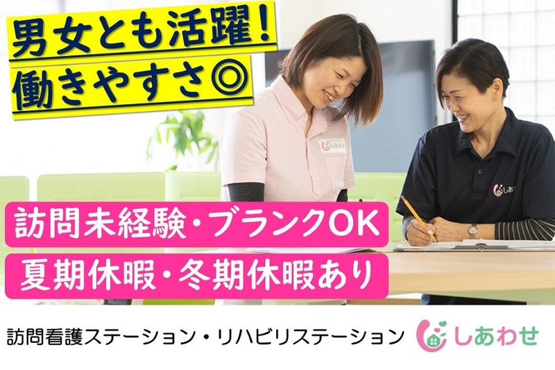 職種/仕事内容 | 【仕事内容】 「大切な人のしあわせに貢献する」ご利用者様やご家族・一緒に働く仲間(スタッフ)もそのご家族のことも大切にしていきます! 訪問看護がはじめてという方も、看護師として久々に復帰したいという方も大歓迎です。年齢・性別不問です! ■働き方のポイント! しあわせでは、フレックスタイムを取り入れています。日中に急な用事(お子さんの行事や病気、銀行の用事など)があるときには、 中抜けをしていただいても大丈夫です!その日に中抜けした時間は、別の日に振り替えて勤務することが可能です。 家庭やプライベートとの両立を大切にしています。 ■訪問看護の主な仕事内容 ・胃ろう・経管栄養・点滴の処置・喀痰吸引 ・血糖コントロールなどの処置 ・健康相談に応じた日々の健康管理のお手伝い ・衛生面の介助や見守り ・人工呼吸器の管理など ・検温、内服の確認など入所者の健康チェック ・医師の対応補助など ■訪問用の車両について 社用車使用可能です。直行直帰で、通勤や帰宅にそのまま社用車を使用していただけます。 その場合のガソリン代も全額支給です。 ※自家用車を使用していただくことも可能です。(私有車手当・ガソリン代・通勤手当別途支給) ■仕事のやりがい ご利用者様、そのご家族との深いかかわりをもつことができ「寄り添う」看護が行えることが一番のやりがいです。 また、2事業所+ナーシングホームに訪問看護師がおりますので、仕事もプライベートも色々と相談に乗ってもらえるのも頑張れるポイントです。 ■研修について 入社後、おひとりで対応を安心してできるように社内研修や訪問同行など丁寧な研修を行っています。 また、研修後も新規の利用者が使用している機器について適宜研修しますので、経験や知識に自信がない方も安心してご応募ください。 ちょっと興味があるから、将来のために話を聞きたいなど・・・ 些細なことでも結構ですので、あなたの要望をお聞かせください。 この機会にお気軽にご応募・お問合せください。 事業所見学もお気軽にご連絡ください。 |