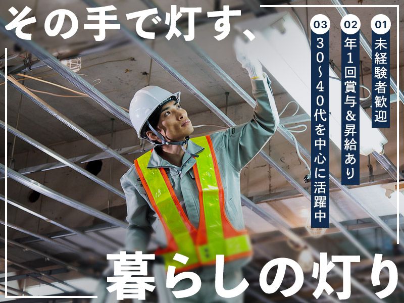 対象となる方 | 必要資格・経験 <必須> 普通自動車免許(AT限定可) <歓迎> 電気工事士(1種、2種)の資格 現場経験者 〇業界未経験者歓迎 |