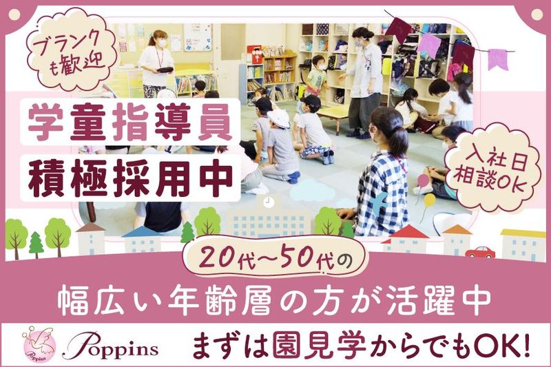 職種/仕事内容 | 仕事内容 \資格を活かして働きませんか?/ ポピンズが運営する 学童の保育スタッフ募集! ✧今月採用強化中!✧ 人気求人のため定員に達し次第、 募集終了の可能性がございます! 入社時期は柔軟に調整いたします◎ 少しでもご興味のある方は ぜひお早めにご応募ください! 【おすすめポイント】 ✦高時給1,550円以上 ✦シフトは月ごとに提出 ◎面接はWebで1回!隙間時間でご参加可能 ◎面接の日程調整可能! お気軽にご応募ください! 【仕事内容】 放課後に学童施設に集まった子ども達と 一緒に遊んだり、宿題のサポートしていただきます。 まずは、子どもたちと思いっきり楽しく遊んでいただきます。 すぐ近くで成長を感じられるやりがいのあるお仕事です。 【1日のスケジュール】 13:00 登園 15:00 おやつタイム 16:00 自由時間 17:00 お勉強タイム 19:00 お迎え ※その日の活動予定により異なります。 ✧自由時間では、 アートやスポーツ、集団遊びなど 思いっきり子ども達と楽しく遊ぶ時間です。 ✧お勉強時間では、 宿題だけでなく興味のあることを調べたり 子供たちの探求意欲を深める大事な時間です。 【入社後について】 先輩社員が手厚くサポート 軸となる運営に関しては社員が対応いたします。 また、スキルアップも可能で、 いつでも学べるEラーニングや資格支援制度なども完備◎ 正社員として働くことも可能です! 【得意を活かして働ける】 スポーツが得意な方はスポーツを取り入れた遊びを、 写真が趣味な方は写真を取り入れた活動を、 一人一人の"得意"に合わせて 子ども達との楽しい企画を積極的に導入しております! ⟡⋆˙ - ⟡⋆˙ - ⟡⋆˙ -⟡⋆˙ - ⟡⋆˙ - ⟡⋆˙ - ⟡⋆˙ - ⟡⋆˙ ブランクがある方でも大丈夫! しっかりとサポートします! ⟡⋆˙ - ⟡⋆˙ - ⟡⋆˙ - ⟡⋆˙ - ⟡⋆˙ ポピンズでは、元保育士・元教師の スタッフが多数活躍中! 入社後は先輩社員が手厚くサポートしますし、 軸となる運営に関しては社員が対応するので安心◎ また、いつでも学べるEラーニングや 資格支援制度なども完備しており、 正社員として働くことも可能です!! 30代~50代の子育てママさんも多数! "家庭との両立大丈夫かな…” "子どもが急に体調崩したりするかも…" こんな気持ちをいただいている方、 ポピンズには同じようにお子さまをお持ちで 家庭と両立しながら働いてるスタッフが多数いるため いつでも協力できる体制が整っています◎ |