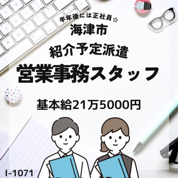 職種/仕事内容 | 仕事内容 紹介予定派遣★営業事務スタッフ募集中 ・半年後に正社員登用のチャンスあり! ・事務スキルを活かせる営業事務スタッフ募集中 ・専用システムを使った受注業務や見積書作成 ・電話応対など多岐にわたる業務を経験 ・派遣期間は時給1,300円、基本給215,000円 ・残業代は別途全額支給 ・年2回の賞与あり、最大で基本給の4ヶ月分 ・毎年5月に昇給の機会あり ・初年度の年収は約280万円からスタート |