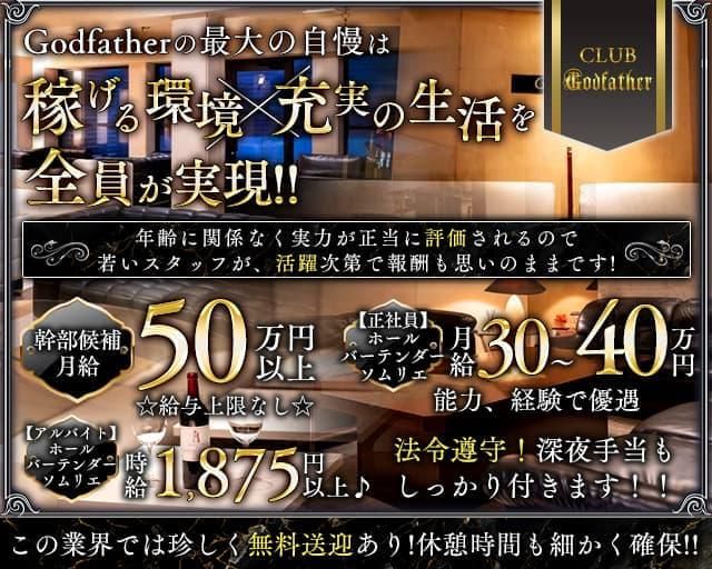 職種/仕事内容 | 仕事内容 ドリンク作り及びドリンクの提供や灰皿・アイスの交換など、簡単なホール業務をお任せします。 研修があるため、未経験の方でも心配いりません。 ご活躍に応じて、スタッフのマネジメントや付け回しなど、業務の幅を広げていけます。 2025年4月1日 ~RENEWAL OPEN~  ̄ ̄ ̄ ̄ ̄ ̄ ̄ ̄ ̄ 上野エリアで20年愛され続けている 最高級のキャバクラでナイトワークを始めませんか? ただいま、新規スタッフを 《学歴・職歴・年齢・性別》問わず大募集中! 当店の黒服とは “単なる夜のお仕事”ではありません◎ 夜の一流をつくる演出家であり 選ばれた男だけが立てるフロアに佇む“格”のある仕事です。 背筋を伸ばし、洗練された現場で稼ぎ 大人の男になるというステータスを手に入れることが可能! 「高収入を得たい」「仕事で感動を得たい」「夢を描ける日常を得たい」 「できる男と認められる自分を得たい」「プライベートも充実した日常を得たい」 こういったあなたの願望を 【ゴッドファーザー】が全て叶えます。 また、老舗店ならではの客層の良さも魅力! 安心×安全な良環境のため、未経験の方でも始めやすいと言えます。 3か月間の研修期間もあるためゼロからのスタートでも心配いりません◎ 〓〓〓〓〓〓〓〓〓〓〓〓〓〓〓〓〓〓〓〓 【CLUB Godfather(ゴッドファーザー)】 〓〓〓〓〓〓〓〓〓〓〓〓〓〓〓〓〓〓〓〓 ■現在の募集職種はこちら■  ̄ ̄ ̄ ̄ ̄ ̄ ̄ ̄ ̄ ̄ ̄ ̄ ̄ ̄ ┏━━━━━━━━━━━━━━┓ 《店長・幹部候補》 ⇒月給:50万円~ 《ホールスタッフ(正社員)》 ⇒月給:40万円~ 《バーテンダー(正社員)》 ⇒月給:35万円~ 《ソムリエ(正社員)》 ⇒月給:35万円~ ※35万円最低保証 お給料に上限はありません。 ー 《ホールスタッフ(アルバイト)》 ⇒時給:1,875円~ 《バーテンダー(アルバイト)》 ⇒時給:1,875円~ 《ソムリエ(アルバイト)》 ⇒時給:1,875円~ ┗━━━━━━━━━━━━━━┛ 上記の基本給からスタートし ご活躍によって随時『昇給・昇格』あり! あなたの頑張りを明確な制度で正当評価します。 “スピード昇給·昇格実績”はどこにも負けません! さらに、最大“年4回”の『賞与』もあります◎ モチベーションを高く保てる環境です! また、今なら『入社お祝い金』10万円をプレゼント! ※アルバイトスタッフは5万円 “夢”を叶えたい方は【ゴッドファーザー】で稼ぎましょう。 _/_/_/_/_/_/_/_/_/_/_/_/_/_/_/_/_/_/_/ ■充実の福利厚生■  ̄ ̄ ̄ ̄ ̄ ̄ ̄ ̄ ̄ ̄ ◆交通費全額支給◆ 通勤に掛かる余計な出費を抑えられます! 遠方にお住まいでも心配いりません◎ ◆送りあり◆ キャストだけでなく、スタッフも利用可能! 退勤後は車内で身体を休めながらご帰宅できます◎ ◆社会保険完備◆ “もしも”の事態に見舞われてしまっても安心! 腰を据えて長く働ける環境です◎ _/_/_/_/_/_/_/_/_/_/_/_/_/_/_/_/_/_/_/ 【ゴッドファーザー】では 『スタッフ全員が腰を据えて長く働ける環境』 『それぞれの個性を尊重し時間をかけて丁寧に育てる社風』 この2つを信念とし、これまで組織を運営してまいりました。 それこそが社員の幸せに繋がり、一人一人を成功者へと導き そして当社の《成長・信頼・飛躍的な実績》を築き上げてこれた証であると考えています! 「稼ぎたい」「勝ち組になりたい」「安定した豊かな生活を手に入れたい」 そんな《野心・夢・目標》を当店で実現しませんか? あなたからのご応募をお待ちしています。 |