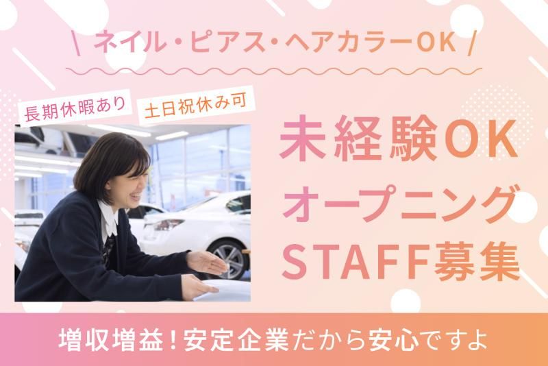 職種/仕事内容 | 仕事内容 \ 新店舗でのびのび事務デビュー / 2025年8月、小牧市に 新しい店舗がオープン! 「そろそろ正社員になりたい」 「事務に挑戦してみたい」そんな方も歓迎♪ ✨若手が多数活躍中◎ どの店舗も20代中心で活気があります。 ネイル・ピアス・ヘアカラーも自由です♪ ✨しっかり休める安心環境 週休2日制で年間休日は125日。 お盆や年末年始の長期休暇もあります。 有給取得率は90%以上と高水準! ━━━━━━━━━ ◆ 仕事内容 ◆ ━━━━━━━━━ 自動車の販売・買取を行う店舗にて、 受付対応や事務業務をお任せします。 < 具体的には… > *電話・来客対応(初期のご案内) *車両情報や経費のデータ入力 *書類作成(名義変更などの簡単な手続き) 専門的な知識や経験は一切不要! 丁寧な研修をご用意しているので、 事務が初めての方や社会人経験が浅い方も 安心してスタートできます。 ▼ 社内やお客様と関わる機会も多く、 感謝の言葉を直接もらえるやりがいも◎ 「モクモク作業だけじゃ物足りない」 という方にもぴったりです! ━━━━━━━━━ ◆ 職場環境 ◆ ━━━━━━━━━ 「見て見て、ネイル変えたんだ!」 「次はインナーカラーしたいな~」 そんな会話が飛び交う職場です♪ 髪型や髪色、ネイルやピアスも自由◎ 「黒髪じゃないとダメ」 なんてルールはありません。 好きなスタイルで、のびのび働けるから 仕事にも前向きに取り組める── そんな社風です。 < ここもポイント > ✅希望休や有給取得も推奨 ✅転居を伴う転勤なし ✅育休制度あり ━━━━━━━━━ ◆ 会社情報 ◆ ━━━━━━━━━ 創業以来、 ずっと右肩上がりに成長を続けており、 売上高152億円の企業に※25年9月 今後も出店計画は多数あり、 まだまだ拡大を見込んでいます。 そんな会社だからこそ、 待遇や制度も業界トップクラス! ▶ 高月給+昇給・賞与年2回 ▶ 土日祝休み相談OKの週休二日制 ▶ 資格取得支援や各種手当 etc. 「そろそろ安定して働きたい」 「ちゃんと評価して欲しい」 そんな想いを持つ方にもぴったりです。 ━━━━━━━━━━ ◆ 選考について ◆ ━━━━━━━━━━ 和気あいあいとした かしこまらない社風のため、 選考もラフに話せる“面談形式”です! 志望動機は肩ひじ張らず、あなたの言葉で 素直な思いを聞かせてください。 仕事は?給与は?お休みは?等々、 気になることがあれば 遠慮なく聞いてください◎ |