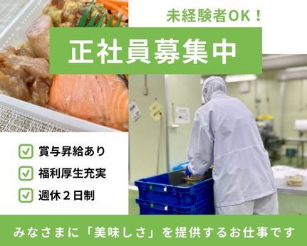 職種/仕事内容 | 仕事内容 【お任せするミッション】 今回は製造部門にてパート従業員さんの シフト管理や工場内の食材・機械管理を 行っていただく社員を募集しています。 製造ラインのスムーズな稼働のために、 欠かすことのできないポジションです! 専門知識や資格は一切不要ですので、 職種未経験の方も安心してご応募くださいね。 【具体的な業務内容】 ・製造ラインの工程管理 ・商品の衛生管理 ・商品の数量管理 ・コスト管理 ・シフト調整などの人員管理 <入社後の流れ> 入社後はまず、製造ラインに加わり、 商品が完成するまでの流れを学習します。 その後、全体のプロセスを理解した段階で 徐々にマネジメントをお任せしていきます。 【福利厚生について】 住宅・家族手当、賞与や退職金など、 働きやすさにつながる制度を多数用意! ***************** 日々の頑張りは昇給・昇進で評価◎ 専門的な知識を身に着け、 将来はキャリアアップも目指せます! その他、クリスマスの時期には全員に ホールケーキ贈呈など嬉しい待遇も☆ ***************** 【当社について】 当社は、道内のセブンイレブン向けに お弁当やお惣菜等の製造を担っており、 常に安定した業績をキープしています。 徹底した品質管理や良質な味の追求を 強みとし、道産食材を使用した商品の 開発・提供を続けています。 <拠点> ================= ■札幌工場(厚別)■札幌八軒工場 ■旭川工場 ■函館工場 ▼採用HPもご覧ください▼ =================== http://www.benkama.co.jp/ =================== |
