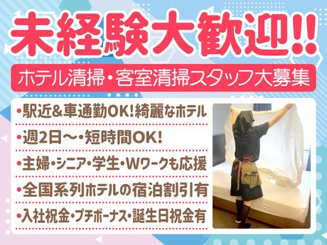 職種/仕事内容 | 仕事内容 キレイでお洒落な人気ホテルの清掃スタッフ <<未経験大歓迎!週2日~OK!>> キレイでお洒落な人気ホテル 入社祝金・誕生日祝金など待遇盛り沢山 20代・30代・主婦・フリーター活躍中! ==================== *マイカー通勤OK!無料駐車場完備 ガソリン代も支給します◎ *入社祝金、社員割引やプチボーナス 誕生日祝金など待遇充実! *週2日~・短時間・WワークOK◎ *定着率抜群◎続けやすい雰囲気 *主婦・シニア・学生さんも活躍中 *丁寧な指導ありで安心勤務◎ *経験者は優遇します! 他ホテルとかけもち等もOK! ==================== とっても綺麗なホテルなので 気持ち良くお掃除できますよ◎ 仕事内容 <客室清掃> ホテルの客室をきれいに整えるお仕事です。 いつもの家事スキルをそのまま活かせます。 ■ベッドメイキング ■バス・トイレの清掃 ■室内の掃除機がけ、ほこり取り、ゴミ回収 ■タオルの交換、アメニティの補充 など ※重たい清掃道具を運ぶような作業はありません ※基本は1人でコツコツ進めるお仕事です 未経験の方はもちろん、 これまでに清掃のお仕事をされていた方や、 ホテルの客室清掃など清掃スタッフの経験がある方も大歓迎です。 ー 清掃作業の流れ ー 使用済みリネン回収 (シーツ・タオルなど) →ゴミの回収 →新しいリネンを持込 ベッドメイキング実施 →水回りの清掃 (バス・トイレ・洗面台) →アメニティ類の補充 新しいごみ袋もセット →机などの拭き上げ →掃除機を全体にかける これで1室完了! 次のお部屋に移ります。 ー マンツーマンで親切丁寧に研修します ー 枕の置き方など細やかな心遣いまで しっかり教えます◎ 慣れるまでじっくり丁寧に 指導するのでご安心ください! 嬉しいスタッフ待遇盛りだくさん! *プチボーナス(年2回/業績による) 臨時ボーナスがあるときも! *年末年始は時給UP! *従業員割引有! *入社祝い金・お誕生日祝い金有! (研修後正式雇用時) *関連会社ホテルの無料宿泊や割引有! 旅行好きな方や家族サービスにもおすすめ 待遇も職場環境も良く、定着率抜群◎ 学生から主婦・シニアスタッフまで 皆無理なく長く続けてくれています。 週2日~・1日4時間~OK! 短時間でも安定した収入が得られるので、 無理なく長く続けやすい環境です。 例えば、こんな方におすすめ ◎退職後もほどよく社会と繋がっていたい方 ◎家事の合間に短時間だけ働きたい方 ◎体を動かす仕事で健康維持をしたい方 ◎ブランクがあっても安心して働きたい方 ◎コツコツ・黙々と取り組む仕事が好きな方 扶養内で働きたい主婦(夫)の方はもちろん、 スキマ時間を有効活用したいフリーターさん、 別のお仕事と両立したいWワーク・副業希望 の方にもぴったり。 ライフスタイルに合わせてムリなく働けます。 (※週4日勤務を希望された場合) 定年後のセカンドキャリアにもおすすめの環境。 安心して長く続けていただける職場を一緒につくっていきましょう。 会社について 当社、株式会社ワールドクリーンは 2021年11月に設立した、 「ホテル清掃」に特化した会社です。 設立以来、数多くのホテル運営会社様 より信頼をいただき、1棟受託30棟、 一部受託18棟、合計48棟のホテルの 清掃業務を請け負っています。 ※2025年1月現在 |
