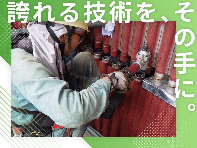 職種/仕事内容 | 仕事内容 *************** 受注安定企業で、腰を据えて働く。 風通しのよさが自慢の会社の、 「現場作業スタッフ」募集中! *************** \この求人のポイントは?/ ☑一生モノのスキルを手にできる ☑昇給あり&賞与最大年2回 ☑風通しバツグンの安定環境 <対応する場所> ごみ処理施設クリーンセンター、 発電所、製鉄所など <仕事内容> ・ボイラー据付 ・配管工事 ・機器撤去据付 ・回転機器撤去据付など <エリアについて> 建設によっては全国各地の現場あり! 平均2〜4ヶ月、長くて1年程度の 出張工事をお任せします! (長崎件/千葉県/大阪府 岡山県/福岡県など) |