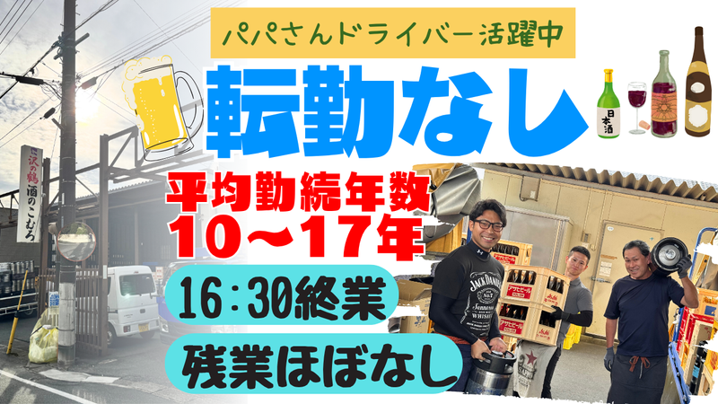 職種/仕事内容 | 仕事内容 【20代・30代の若手男性活躍中!】 家族持ちの方も、 これから家族を持つ方も安心! お子さんのの学校行事には、 むしろ仕事を休んで参加してください! ▶ ノリ良し!話すの大好き! ▶ 地元を盛り上げたい! ▶ 割と体育会系です! ▶ 力仕事もドンとこい! そんな方々にもオススメします!! ◤ パパさん世代が活躍中! 家族と過ごす時間も大事に ◢  ̄ ̄ ̄ ̄ ̄ ̄ ̄ ̄ ̄ ̄ ̄ ̄ ̄ ̄ ̄ ̄ ̄ ✅学校行事は遠慮なく休んでOK! 保育園・幼稚園・小学生の お子さんがいる方も安心して働けます✨ ✅家族手当ありで収入面もサポート<< 配偶者や子ども手当で 安定収入を確保できます! ✅転職なしで長く働ける! 流山市・松戸市・柏市周辺で マイホームを購入したスタッフも在籍! ◤ お客様との関わりも楽しめる! 配送だけじゃないやりがい ◢  ̄ ̄ ̄ ̄ ̄ ̄ ̄ ̄ ̄ ̄ ̄ ̄ ̄ ̄ ̄ ̄ ̄ ✅資格取得支援あり✨ 利き酒師やワイン、 焼酎アドバイザーなど、お酒好き必見! ✅固定取引先でお客様の声が直接届く! 「ありがとう!」や 「この間紹介してくれたの評判良かったよ!」 など直接嬉しいお言葉をいただける! ✅必要なのは【気配り】【愛嬌】【元気】 学歴・経験よりも、 人柄や前向きな姿勢が活きます!! ◤ 2人1組で安心しながら働ける ◢  ̄V ̄ ̄ ̄ ̄ ̄ ̄ ̄ ̄ ̄ ̄ ̄ ̄ ̄ ̄ ̄ ̄ ̄ 2人1組でお酒類の配送をお任せします! 新商品の案内や新しくオープンするお店に 商品の案内をするのもお仕事の1つ。 ノルマはありません◎ その他にも、営業・金銭やり取りなども お願いします! 【車種】2t車(AT車) 【件数】1日多くて20~30件 【エリア】地域で頑張る居酒屋さん (千葉県/流山市や松戸市・柏市など) 最初は先輩と一緒にルートを回り安心! 飲食店さんの新店情報を聞けたり、 「新しい焼酎入れたいんだけど〜」 なんて相談を受けることも! 一緒に配送を通して 地元を盛り上げてください!! ◤ ̄ ̄ ̄ ̄ ̄☎⋆.✩ ̄ ̄ ̄ ̄ ̄◥ お電話でのご応募も歓迎 ℡/04-7145-6611 ※営業など応募者以外の電話は お控えください。 ◣_____________◢ |