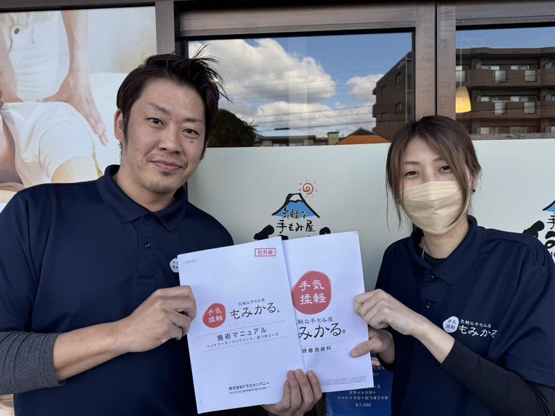 職種/仕事内容 | 仕事内容 リンパマッサージ・足つぼ・全身もみほぐし などの施術スキルを無料で習得! 家族や友人にも喜ばれる素敵なお仕事です キレイな職場で身体について詳しくなろう ★委託★という新しい働き方を 始めませんか? ◎メニュー 指圧施術・リンパ・ハンド・フット (足つぼも含む)などのマッサージ施術を お願いします。 ※店舗によりメニューは異なります ※慣れながら色んなメニューを 担当して頂きます ◎その他 ・来店や予約の受付対応 ・ベッドメイキング ・掃除、洗濯、消耗品発注 ・カンタンなPC操作 (受付、お客様管理に使う簡単な操作) 【入社後】 研修からスタート 20~30時間の研修を受けていだきます。 ・研修日 :基本的に平日 (土日も可能です) ※デビュー前の研修期間中は 無報酬ですが、WワークOKですので アルバイトを併用頂いても構いません。 研修トレーナーは 元プロサッカー選手やリンパ施術トレーナーと 体のことを知り尽くしたプロフェッショナル達! 安心してスキルを身に付けることが出来ますよ! 【店舗間移動も可能!】 浜松市内の6店舗は 車で最大15分間隔にあり、 行き来して頂いてもOK! 「今日は別の店舗に行きたい!」といった 当日の急な出勤にも融通がききます♪ 【6店舗の会員数は3万人を突破】 集客力がもみかるの自慢☆彡 受付数は1ヶ月4000名! お客様の数が多いからこそ安定した収入を 確保することが出来ます。 【働きやすさバツグン!】 スタッフのことを大切に思っているから オーナーからスタッフへの還元は バッチリ! 例えば… ◇施術内容によっては特別手当あり その他手当も充実しています ◇バックは割引があっても同じ金額です。 もちろん快適に働いていただけるよう、 色々な備品も揃えています◎ 洗濯機や全自動乾燥機があるので 施術後の片付けもラクラクです♪ |