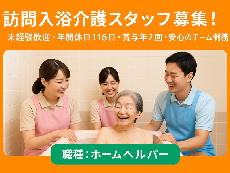 職種/仕事内容 | 仕事内容: \自宅での快適な入浴をサポートするお仕事!/ 訪問入浴介護スタッフ募集! ➽ 安全で快適な入浴介護を提供します! ──────────────── ❖ おすすめPOINT ✅ ご自宅で入浴が困難な方に、浴槽をお部屋に運ぶサービスを提供! ✅ 看護師1名・介護職2名の3名体制で安心の訪問! ✅ 血液循環・代謝機能を高める入浴介護で、利用者様の健康をサポート! ❖ どんなお仕事? ご自宅での入浴が難しい方に対し、浴槽をお部屋に運び、安全で快適な入浴を提供するサービスを行います。お体を清潔に保つことで、健康維持に貢献します。 【勤務の流れ】 - 8:30 出社・朝礼・連絡・準備 - 9:00 入浴サービス - 12:00 休憩 - 13:00 入浴サービス - 17:00 帰社・翌日の準備・事務処理 - 17:30 退社 ※ 利用者様の状況により時間の変動あり ❖ 訪問エリア ◆ 日立市 ◆ 東海村 ◆ 常陸太田市 ❖ こんな方にぴったりのお仕事です! 人と接することが好きで、利用者様の健康を支えたい方に最適です。安心して働ける環境で、やりがいを感じながらお仕事ができます! ──────────────── |