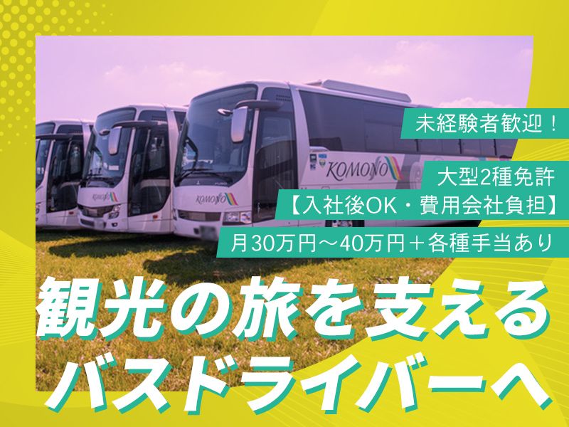 職種/仕事内容 | 仕事内容 \未経験から観光バスドライバーに!/ 大型2種免許の取得費用は会社が全額負担◎ 人間関係の良さが魅力の職場で、 観光の旅を支えるドライバーにチャレンジしませんか? <求人のPOINT> ✅大型2種免許取得費用【全額負担】! ✅月給30~40万円+豊富な手当で安定 ✅充実研修で未経験から安心デビュー ✅40代以上も応募可!年齢不問 【仕事内容】 観光バス(一般貸切バス)のドライバーとして、 以下の運行をお任せします。 ・日帰り・宿泊の団体旅行 ・学校の遠足や修学旅行 ・大手旅行会社の団体ツアー 【研修について】 入社後は座学+20時間の実務研修 +先輩社員との相乗り研修を経て、 安全にデビューできます。 |