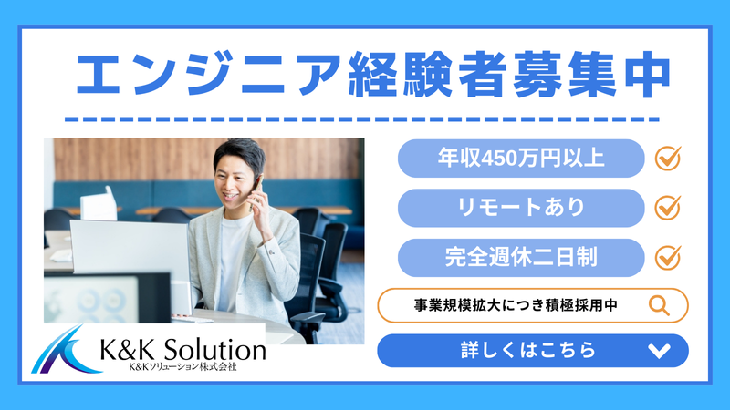 対象となる方 | 求めている人材 ✅何かしらのITエンジニア経験がある方 ✅日本企業で5年以上勤務経験がある方 ✅学歴不問 ✨ハイスキルエンジニア、コンサルタントにキャリアアップしたい方を優遇。 ✨スキルはあるのに、給料が上がらない方必見です!創業当初より社員への還元を重視しています。(IT業界平均よりも当社エンジニアの平均は100万円程高いです♪) ⏩意欲やポテンシャルがあり 将来を期待できる方であれば、 業務経験を問わず採用の可能性があります。 キャリアや志向に応じて豊富な案件を アサイン可能ですので まずはお気軽にエントリーください! |