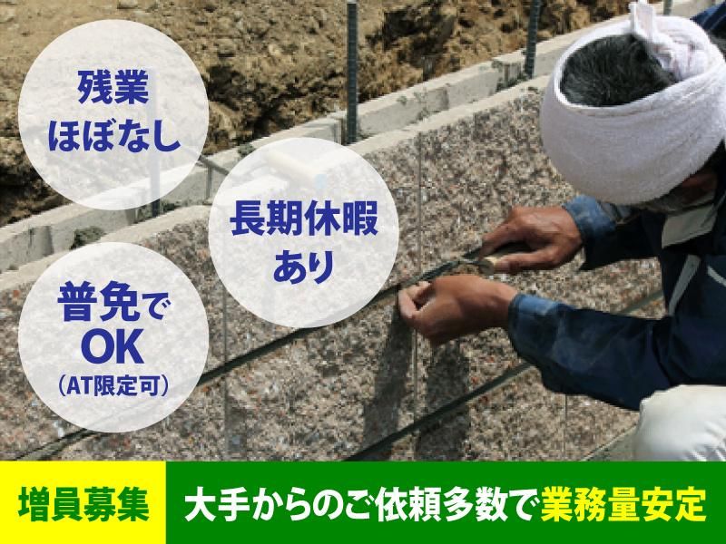職種/仕事内容 | 仕事内容 福島県・埼玉県越谷市同時募集 \やりたいことが見つからない!/ \働くならかっこいい仕事がしたい/ \守りたい人のためにちゃんと働きたい!/ ・・・ そんなあなたに<手に職がつけられて> <人に感謝されて><安定して稼げる>仕事、 ここにあります! ~・~・~・~・~・~・~・~・~・~・ 家の印象は<外構工事>で決まる! 大切なマイホームを仕上げる職人、募集! ~・~・~・~・~・~・~・~・~・~・ 「外構」って言葉、馴染みがない人も いるかもしれません。 当社では、門柱やフェンス、カーポートや 玄関へ続く道など、家の第一印象を決める 大事な部分を施工しています。 初めは材料準備などの先輩のサポートや 手元作業からスタート! 重機の扱い方から仕上げの技術まで イチから丁寧に教えます! Q. 現場系の仕事、やったことないです! でも体力だけは自信あります! A. ばっちりです!未経験でも大歓迎! 工場勤務や現場監督、芸能の照明さんなど 異業種からの転職スタートの先輩多数です! \あなたを教える先輩は・・・/ 「職人さんって厳しそう!」「怖そう」 って不安になりますよね? あなたに技術を教えてくれるのは、 大ベテラン社員。 一緒にいい仕事をしたい、成長をサポートしたい! という気持ちが人一倍あります。 だから分からないところも分かるまで、どんどん質問してください! \実際に働くと…?/ 同じ姿勢で作業をしたり、タイルを運んだり… 仕事が筋トレになるので、ジムに行かなくても イイ体つきになれますよ!(笑) |