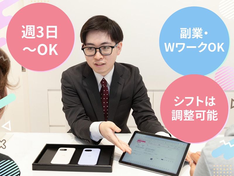 職種/仕事内容 | 仕事内容 =================== ✨バイトデビューも大歓迎! スマホに詳しくなくてもOK◎ 今いる先輩もほとんどが未経験スタート ✨テーマパーク割引など特典も♪ 人気の施設をお得に楽しめる、 うれしい福利厚生あり! ✨週3日~OK 授業やテスト期間も安心! シフトは希望をしっかり考慮◎ テストやサークル、 帰省なども相談しやすい♪ ✨大学生・20代中心のフレッシュな職場! 同年代のスタッフが多くて、雰囲気◎ バイト仲間と仲良くなることも♪ ✨やる気次第で成長できる! 希望すれば、バイト→社員への ステップアップも可能! 実際に20代で店長になった先輩もいます =================== ✅具体的な業務内容 ・スマホ・携帯の受付&接客対応 ・料金プランや使い方のご案内 (マニュアル見ながらでOK) ・カンタンなPC入力作業 ・店内POPづくりやイベントの アイデア出しもできますよ! \先輩がいつも近くにいるから安心!/ わからないことはすぐ聞ける環境です♪ 「やってみたい」 「学んでいきたい」って 気持ちがあればしっかりサポートします! =============== ✨地元で“顔なじみ”になれる✨ =============== 実際のお客様の中には 「○○さんに相談したくて来たの」と 言ってくださるお客様がたくさん! 中には「○○さん出勤してますか?」と 予約前に確認してくださる方も。 そんな“人と人のつながり”を 感じられるあたたかさが、 都心の量販店ではなかなか味わえない、 地域密着ならではの魅力です。 ========= ✨スタッフの声✨ ========= 滝澤さん(26歳/店長/入社7年目) 最初は知識ゼロ。でも先輩が 親身に教えてくれて安心でした。 今では「あなたに相談したい」と指名をもらえることも! 成長をサポートできるのもやりがいです。 吉田さん(22歳/スタッフ/入社3年目) 人と話すのが得意じゃなかった私も、 ここで自信がつきました。 「ありがとう」の言葉や 笑顔が本当にうれしいです♪ お客様が安心してスマホを使えるように、 丁寧にサポートしています! ======== 無資格歓迎 女性活躍中 10代の多い職場 20代の多い職場 |