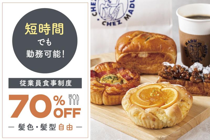 職種/仕事内容 | 仕事内容 ******************** << 短時間勤務もOK!扶養内も歓迎♪ >> 「家事や授業の合間に働きたい」 「夕方だけ働きたい」 そんな主婦(夫)さん・学生さんにピッタリ! 無理なく自分のペースで働ける環境です。 【17時~21時に勤務できる方は積極採用中】 ******************** < 仕事内容 > オシャレなベーカリーカフェ 「Cafe ChezMadu(シェマディ)」の スタッフとして販売・調理業務をお任せします。 ~~ 具体的には ~~ ・レモネードやパンなどの販売 ・ドリンクや軽飲食(パスタ・スープ)の調理 など接客や、人と話すことが好きな方に ピッタリです。 ★主婦・学生・フリーターと幅広く活躍中 ★扶養内勤務の主婦さん活躍中! 平日だけの勤務も可能です。 ★フリーターさんも歓迎します! ★「授業が夕方から!」そんな学生さんは、 日中に働けます。 ★接客未経験の方も歓迎、丁寧に教えます! < 働きやすい環境&うれしい制度も充実! > ・土日祝勤務で時給+50円! ・髪色・髪型自由でオシャレもOK ・スタッフにも人気の「従業員食事制度」あり パンも料理も70%オフで食べられます♪ ・昇給、交通費支給、従業員割引有 ・大人気施設「イクスピアリ」内の店舗です ・12:00~21:00等のフルタイムも大歓迎です |