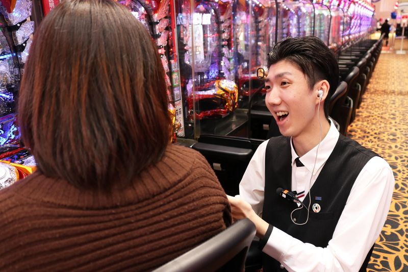 職種/仕事内容 | 仕事内容 お客様からお声がけ頂いたら、先輩スタッフに引き継ぎます。 こちらからお客様にお声がけする接客は原則ありませんので、 接客業が未経験の方も安心です! 各台計数機を導入しているので、重たい玉運びは一切ナシ。 |