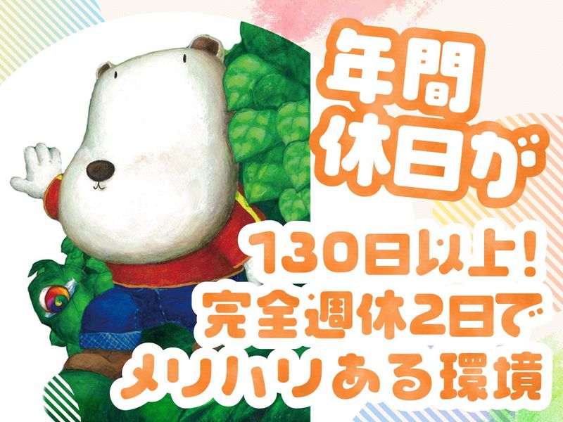 休日休暇 | 休日休暇 シフト制 日・祝定休日 ※年間休日130日以上 【休暇】 ・年末年始休暇 ・夏季休暇 ・ゴールデンウィーク ・育児休暇(10日) ・介護休暇(10日) ・有給休暇(法定通り) ・慶弔休暇 ・誕生日休暇 など |