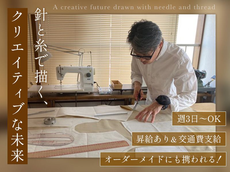 職種/仕事内容 | 仕事内容 / ハイブランドや舞台衣装など 高度な技術を磨きながら 週3日〜働ける 「縫製スタッフ」募集! \ 【 この求人の魅力ポイント 】 ☑ハイブランドの仕事でスキルアップ ☑40代〜60代以上も活躍中 ☑駅徒歩3分・週3日〜OK ☑副業OK・服装髪型自由 ☑特殊な素材やミシンの扱いを学べる <仕事内容はコチラ> 映画・舞台・コンサート衣装制作や ハイブランドのお直しなど、 通常では経験できない 特別な案件が豊富です! 幅広いブランドを扱い、 特殊な素材やミシンの技術も 習得できます。 >>具体的には… ・ハイブランド製品の サイズ調整・修繕 (高級ブランドも対応) ・映画や舞台、コンサート等の 特殊衣装制作 ・オーダーメイドの洋服作成 ・ニット〜毛皮まで幅広い 素材での洋裁業務 ・顧客要望に応じた高度な技術提供 ・紳士服(スーツ)の お直し・調整 |