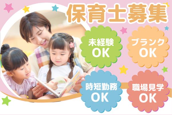 職種/仕事内容 | 仕事内容 保育業務全般を行っていただきます。 <具体的なお仕事> ・送迎、お迎え ・朝の会 ・お着替え、お散歩 ・昼食準備、お昼ごはん ・お昼寝、おやつタイム など ※働く職場によって具体的な仕事内容は異なる場合がございます <ポイント!> ブランクがある方や経験が浅い方にも、ご経験に応じて働く職場をお選びいただけます! 様々な職場をご用意しておりますので、まずはお気軽にご相談ください。 【必須資格】 ・保育士資格、または幼稚園教諭免許をお持ちの方 ※ブランクがある方もOK✧ |