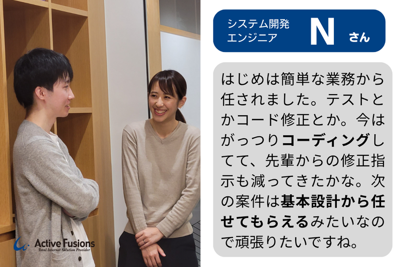 職種/仕事内容 | 仕事内容 "◆業務内容◆ 「なんで」が楽しい! その「困った」を技術でまるごと解決! 提案から要件定義、設計、製造、テスト、 運用保守まで全ての工程担当をお願いしてます。(アウトソースを使わず社内で完結) 受託開発案件一例 ・大手通信会社向け社内管理システム (C#,Razor Pages,EF Core,MariaDB) ・製造業向け管理システム (C#,WebAPI,React,Oracle) ・建築会社向け顧客管理システム (C#,Blazor,Razor Pages,EF Core,MariaDB) 他使用開発ツール VisualStudio,VSCode,Docker,Git, eclipse,Android Studio ※Flutter,Swiftなどを使用したアプリ開発もあります。 【他プロジェクト例】 ・オンライン塾サービスのWEB開発(Java) ・建築会社向け図面管理アプリ開発(Android,Kotlin) ・電子機器通知アプリ開発(iOS,Swift) ・大手小売向けWebサイト開発(Go,Vue.js) ・システム開発会社向けWebプラットフォーム開発(PHP,AWS,Linux) など AIチャットツール(ChatGPT)を活用することで、業務効率化や従業員の生産性向上を図っています。 ※最先端技術、AI技術を活用した働き方をご希望の方、ITスキルやAIツールスキルを活用したい方 一定の知識と経験を有しているエンジニアにはChatGPTならびにCopilotを利用した開発を推奨しています アピールポイント ■保守性の高いシステム開発の追求ができる! ■ 最新技術を積極導入/古すぎる環境はもう卒業! 新しい技術の導入にも積極的!技術選定に関わるチャンスもあります。 ■大規模開発 × 自社プロダクト/開発スピードが1.5倍?※自社調べ 大規模サービスのバックエンド開発や、自社プロダクトの設計・運用に関われます。 ■ リモート対応で柔軟な働き方 ライフスタイルに合わせた働き方が可能です。 ■スキルアップ支援あり! 技術書購入補助・資格取得支援制度など、エンジニアの成長を会社が全力でサポートします。 ■ エンジニアファーストの開発環境 開発に集中できる環境を整備、メインPCは持ち運べるサイズのデスクトップを用意。 コードレビューもあり、技術を高め合えます。 ■成果をしっかり評価 実績・スキルに応じた昇給あり。技術力を正当に評価します。 エンジニア中心の評価制度 「コードを書いていたい!」という 方にはスペシャリストとしての評価を、 「コーディングは苦手だけど管理は得意!」 という方には管理職の評価を致します。 それぞれ公平に評価できる制度を完備し、 やりたい業務ができます。" |