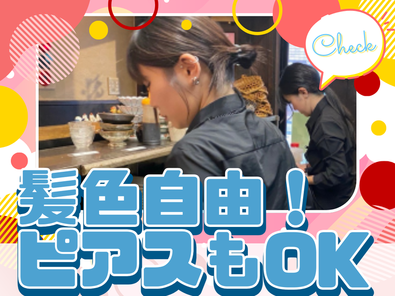 待遇・福利厚生 | 【保険制度】 雇用保険、労災保険、健康保険、厚生年金 【福利厚生】 待遇・福利厚生 【福利厚生】 *昇給 *賞与あり *交通費規定支給 *社会保険完備 *絶品まかないあり(申告制) *髪色自由・ピアスOK *制服貸与 *社員登用制度あり *大入り手当あり 一一一一一一一一一一一一 ココがポイント! 一一一一一一一一一一一一 *絶品まかない付き! *シフト自由! *髪色自由・ネイルOKで自由度高め! *アットホームな雰囲気で働きやすい! |