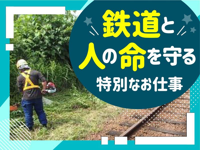 対象となる方 | 求めている人材 業界、業種が未経験でもOK! 特別な資格は不要で学歴も不問で 20代・30代・40代の男性が活躍中! 《必須条件》 普通自動車免許 《 こんな方にオススメ 》 *鉄道や電車が大好き *モクモクと仕事がしたい *プライベートと両立を希望 *適度に体を動かして働きたい もちろん、除草・清掃作業はもちろん、 土木工事や保全・メンテナンスの 経験者ならそのスキルを活かせます! - ■社員へのインタビュー■ (中途入社/30代男性) 社会貢献ができて、なおかつ 安定した仕事を探しているうちに 当社に入社することになりました。 普段立ち入ることのない線路脇で 仕事をするのは新鮮で楽しい! ”世界一”といわれる 日本の鉄道の安全性に 少しでも貢献していると思うと、 何だか張り合いが出ますね。 電車に乗っている時、窓の外で 草刈りや修理作業をしている人を 見たことがあるかもしれませんが それがきっと僕たちです(笑)! - |