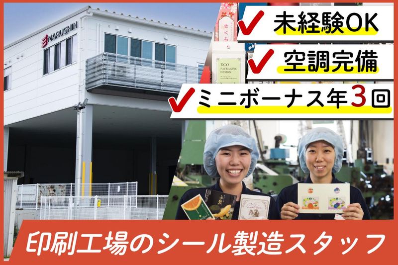 職種/仕事内容 | 仕事内容 ++*++*++*++*++*++*++*++* みんな未経験スタートだからフォローが手厚い◎ 冷暖房完備・清潔な印刷工場での作業です ++*++*++*++*++*++*++*++* ■業務内容 シール・パッケージの印刷工場での軽作業です。 工場内に複数の部署があります。ご入社後は、配属された部署の作業を担当していただきます! どの部署も10~20名ほど先輩スタッフが勤務していますので、困ったことがあれば相談しやすい環境です◎ <作業の例> ・完成したシール・ラベル・パッケージの傷や汚れを検品 ・検品後の製品を段ボール詰め作業 ・機械に材料をセットして、シールの印刷やカット作業 ・次の材料の準備など、オペレーターの補助作業 などなど。詳しい作業内容は面接でしっかりお伝えします♪ 工場内は冷暖房完備ですので、1年を通して快適にお仕事にあたっていただけます。 みなさん未経験からのスタートです!入社後は先輩スタッフがしっかりサポートします。 少しでもご興味があれば、お気軽にご応募をお願いいたします。 ■こんなものを作っています! ・スーパーの割引シール ・お酒の商品シール ・化粧品のPOPシール ・お菓子のパッケージ ・お土産のギフトケース スーパーや百貨店で見かける身近な商品のシールやパッケージが多数! きっとご入社後は、「これって丸信が作っていたんだ!」と驚かれるはず♪ ■会社について 株式会社丸信は、久留米市の本社工場でシール・ラベル・パッケージの印刷加工を行っています。 九州〜関東にかけ順調にシェアを伸ばしており、2024年には新たに基幹工場も完成しました。 現在、案件増加により生産数が伸びており、よりスピーディーにお客様のご要望にお応えするべく、随時パートスタッフの増員を行っております。 ご興味がございましたら、ご応募の程お待ちしております。 |