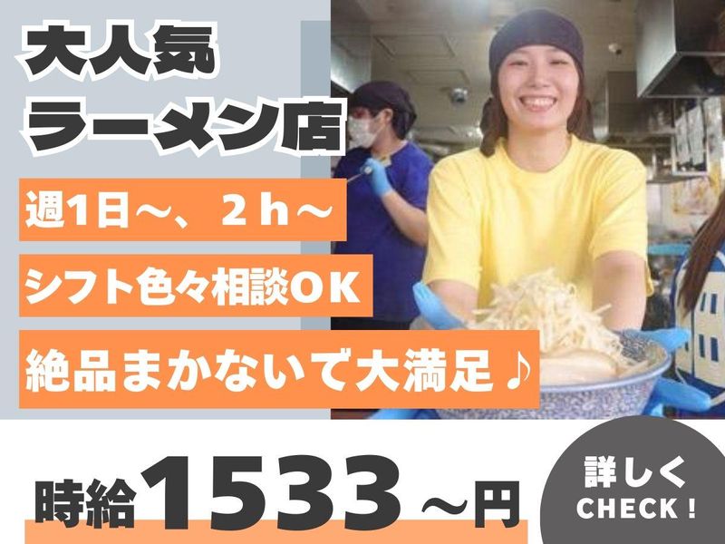 職種/仕事内容 | 仕事内容 ─────────────・⭐・・── ✨22時以降~ラスト勤務で 効率よく稼げます! ✨週1日~、1日2時間~シフト柔軟対応 ✨絶品まかないあり!給与前払いOK ──・・⭐・───────────── 【大人気ラーメン店でのお仕事】 ★当店は食券制でレジがないので 商品の金額は覚える必要はありません。 ●席へのご案内 ●オーダーを受けた料理の提供 ●簡単な調理補助 (具材のカットや盛付け) などをお願いします。 【流れ】 席案内 ↓ 食券の確認 ↓ 料理提供 ↓ 片付け ・・・この一連の作業がメインなので お仕事内容はとってもシンプルです! 簡単な内容からお任せしますので、 ブランクがある方、 未経験の方もご安心ください! ――――――――――――――― ☑週1日からOK ☑夜からOK<22時~> ☑深夜・夜勤の仕事<2時まで> ☑時間や曜日が選べる・シフト自由で 自分時間充実 ☑給与前払いOKで急な出費も安心! ☑絶品まかない・食事補助あり ☑学業と両立したい学生歓迎 ☑家庭と両立したい主婦・主夫歓迎 ☑ご応募の際は履歴書不要 ☑友達と応募OKです |