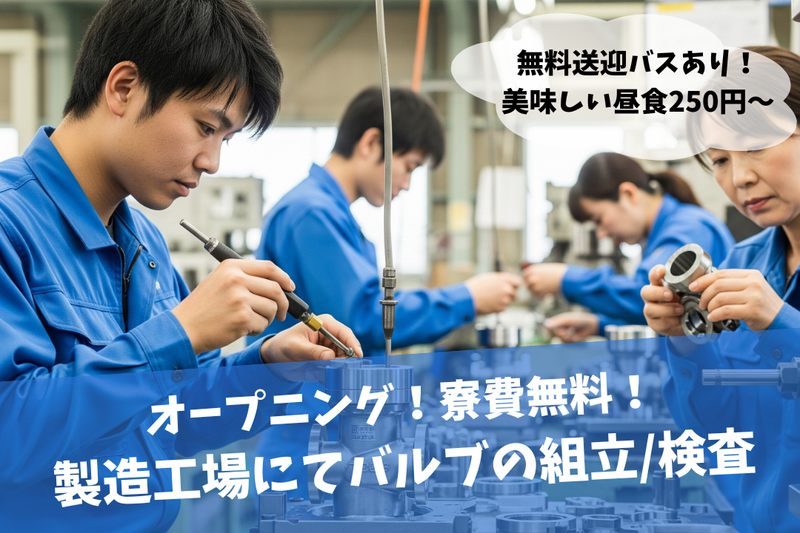 職種/仕事内容 | 仕事の内容 《PICKUP POINT》 ◇某ドラマのモデルの成長企業で勤務 ◇寮費無料のワンルーム寮で新生活スタート ◇即日払いOK&交通費支給 ◇河内国分駅から無料送迎バス有り ◇髪型自由&ピアス・ひげOK ◇綺麗な休憩室&社員食堂完備 ◇商品が軽く外国人とも交流可能 《お仕事内容》 製造工場にてバルブの組立、検査、 部品の機械加工業務をお願いします。 製造事務業務もあり女性も活躍しています。 上記以外にも 在庫管理, ピッキング, 検品, 生産管理といった ポジションをお願いする事も有ります。 \某ドラマのモデル企業で働くチャンス!/ 有名ドラマの舞台になった企業でのお仕事。 話題性も高く、特別な経験ができます! 寮完備!新しい生活をすぐにスタート 寮が完備されているので、 引っ越しもラクラク。 新しい生活をすぐに始められます。 即日払いOK&交通費支給で安心! 即日払いOKだから、急な出費にも対応。 さらに、交通費支給で通勤の負担もなし! バイク通勤OK!髪型・髪色&ピアス・ひげ自由 バイク通勤OKで通勤ラクラク。 さらに、髪型・髪色自由、 ピアスやひげもOKだから、 自分らしいスタイルで働けます。 綺麗な休憩室&社員食堂完備 綺麗な休憩室や社員食堂があり、 快適な環境でリフレッシュできます。 商品が軽い&外国人とも交流できる職場 扱う商品が軽いので、体への負担も少なく、 長く続けやすい。 さらに、外国人スタッフと 仲良くなれる国際的な職場です。 自分らしいスタイルで働けて、寮も完備! 即日払いも可能な働きやすい環境で、 あなたも新しい一歩を踏み出してみませんか? |